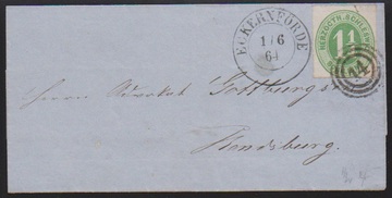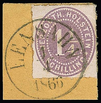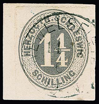 1 1/4 Sch. graulila, tadelloses Briefstück mit seltenem Grotesk-K1 "Wewelsfleth", sign. Engel. Mi. 150,- + 300 P.
