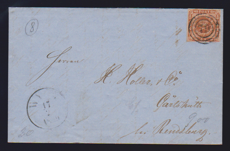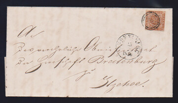 "136" zart nebst K1 "Ahrensberg" auf Prachtbrief Dänemark 4 Sk.