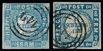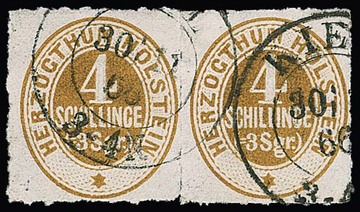 4 Sch. ocker, Kabinettpaar mit vollem Durchstich und sauberem K2 "Kiel", Fotoexp. Möller. Mi. 250,-