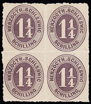 1 1/4 Sch. graupurpur, ungebrauchter Pracht-Viererblock, Mi. 300,-