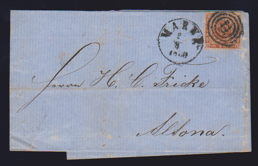 "172" nebst K1 "Marne" auf drei Briefen mit Dänemark 4 Sk., teils kl. Mgl.