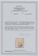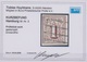 4 Sch. bläulichgrün, optisch gutes gestempeltes Exemplar mit guten Rändern, kleine Hinterlegungen unten. Sign. Bühler und Fotoexp. Lange. Mi. 1500,-