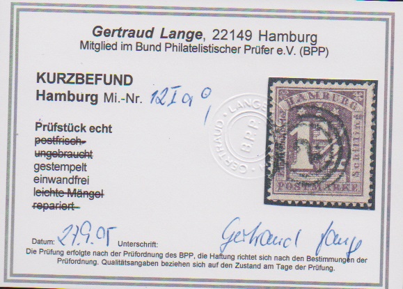 1 1/4 Sch. grünlichgrau, sowie 1 1/4 Sch. dunkelpurpur, guter 1. Druckstein, je gest. Kabinettstücke, Fotoexp. Mehlmann, Lange. Mi. 200,-