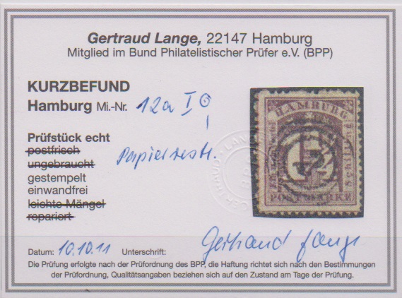 1 1/4 Sch. violettgrau, Kabinettstück mit ungewöhnlicher Doppelentwertung durch NS "2" und Strichstempel. Fotoexp. Huylmans