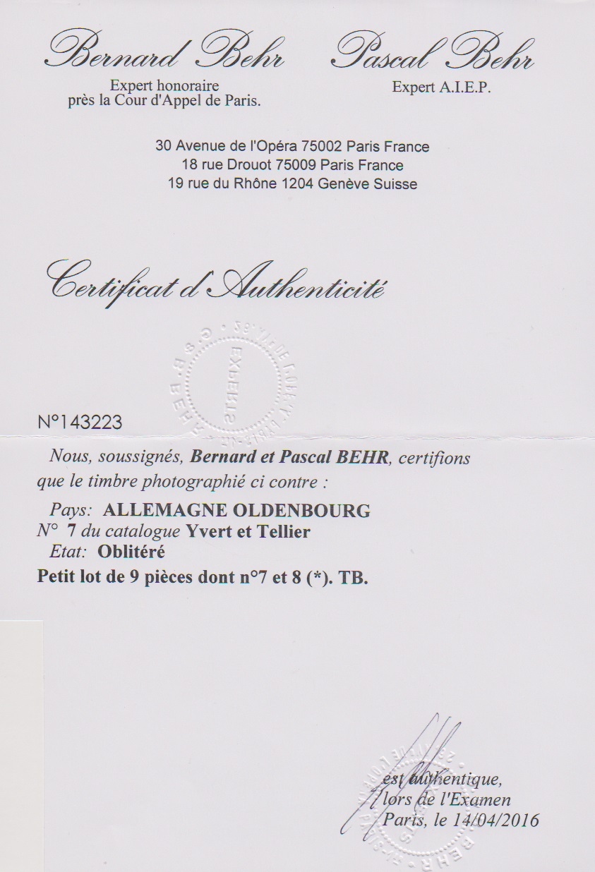 1/3 Sgr. schw./grün, etwas rep. Exemplar auf Unterlage mit auf dieser Marke nicht häufigem K2 "Oldenburg" (Spätverwendung, Stempel erst 1860 eingeführt), Mi. 1200,- +