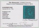 3 Pfge. saftiggrün und hellgrün (linke obere Bogenecke, sehr gut gerandet!), beide I. Auflage, sowie blaugrün, II. Auflage. Drei gestempelte Kabinettstücke, sign. Bühler, Pröschold und eine Fotoexp. Rismondo. Mi. 1060,-