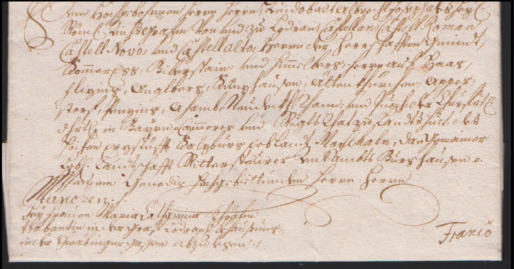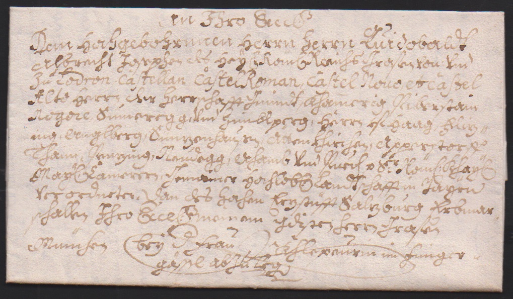 "Wasserburg", 1628, dekorativer Schnörkel-Altbrief mit Inhalt nach Penzing (leichte Altersspuren)