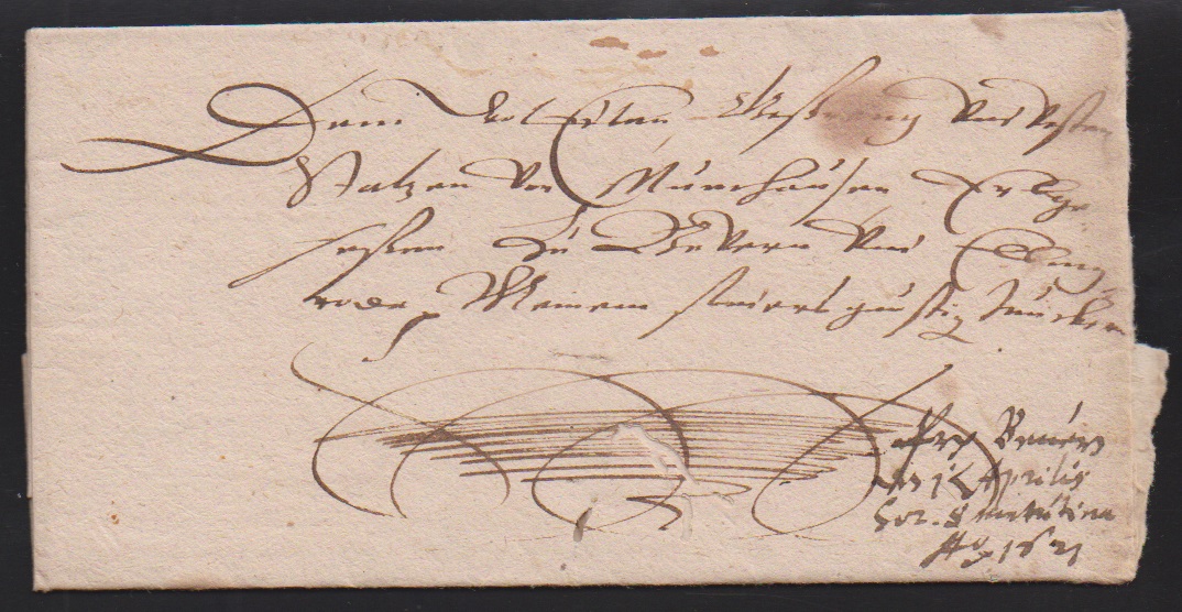 "Wolfenbüttel", 1621, früher Schnörkel-Altbrief des Hofgerichts-Rates Andreas Ehrecht nach Bevern