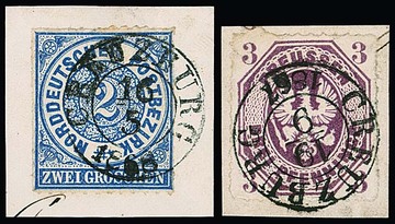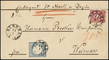 "Bürgel", nachverw. K2 auf Wertbrief mit Währungs-Mischfrankatur 2 Gr. Brustschild und 10 Pfge., ferner auf Briefstück 1 Gr.