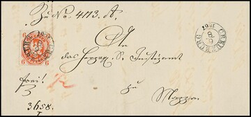 "Creuzburg", nachverw. K2 auf Brief mit besserer Einzelfrankatur Preußen 6 Pfg. nach Nazza (alter Tarif bis 3 Meilen)