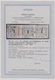 3 Kr. schw./gelb, vier gestempelte Paare (senkrecht per drei, waagerecht, Typen), sowie einmal per zwei auf Briefstück nur mit Rötel-Entwertung (ungewöhnlich)