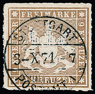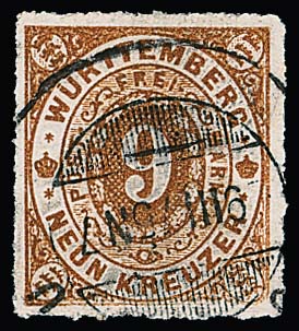 9 Kr. fahlbraun, Kabinettstück mit klarem DB "Stuttgart", Mi. 150,-