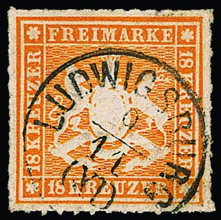 18 Kr. orange, Kabinettstück mit klarem K1 "Ludwigsburg", Mi. 1000,-