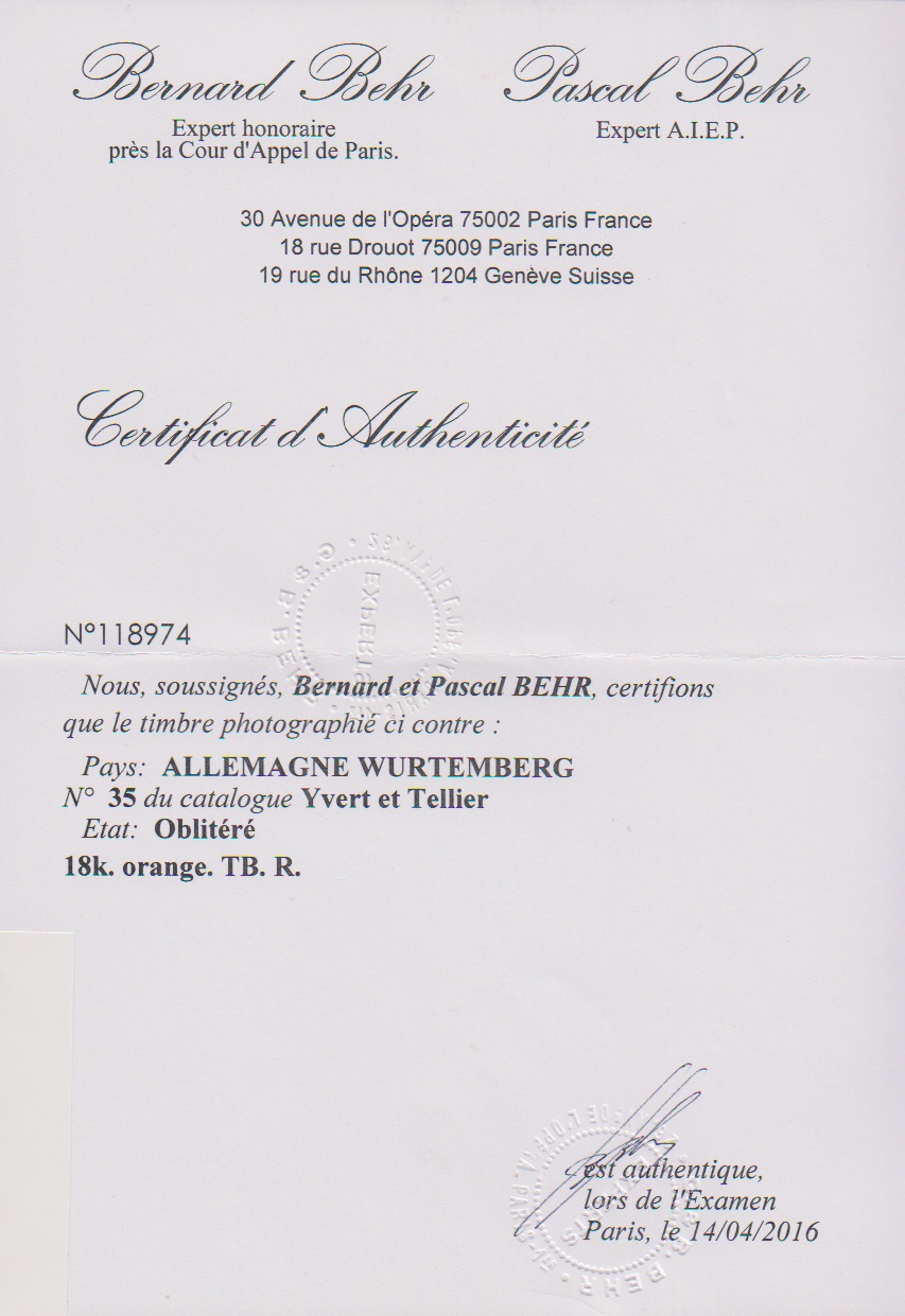 18 Kr. orange, leicht gestempeltes Kabinettstück, Attest Behr A.I.E.P. Mi. 1000,-