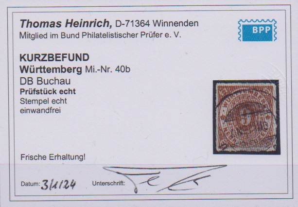 9 Kr. rötlichbraun, Kabinettstück mit DB "Buchau", seltene Nuance, Fotoexp. Heinrich. Mi. 500,-