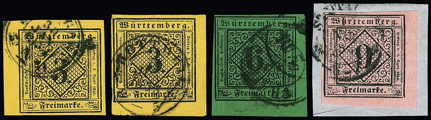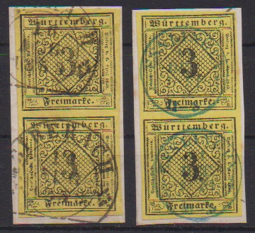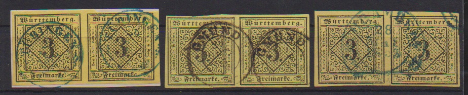 3 Kr. schw./gelb, dunkelgelb und auf Seidenpapier, vier gestempelte Kabinettpaare (zwei Briefstücke), u.a. sign. Heinrich, Irtenkauf. Mi. 370,-
