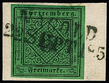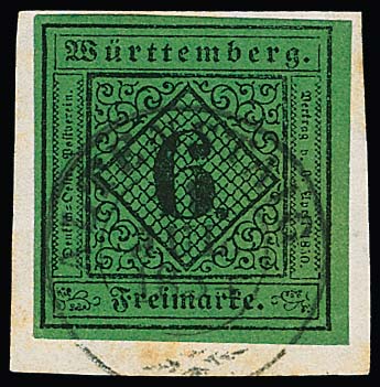 6 Kr. schw./grün, seltene Type IIb, Kabinettbriefstück mit K2 "Altenstaig", Fotoexp. Heinrich. Mi. 230,-