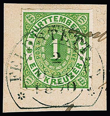 "Feldstetten", schwarzer Steigbügelstpl. (und kl. Federzug) zentr. klar auf Prachtbriefstück 1 Kr. grün