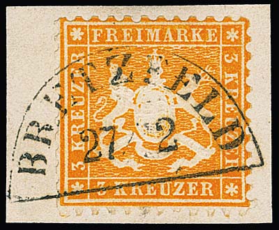 "Bretzfeld", voller Segmentstempel auf Prachtbriefstück 3 Kr. orange, sign. Hederer