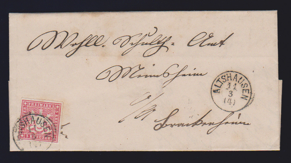 "Altshausen", K1 klar auf zwei Prachtbriefen 3 Kr. rosa bzw. karmin