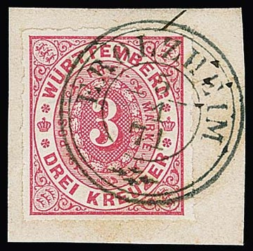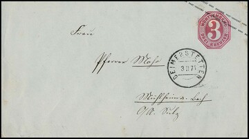 "Beimerstetten", Datumsbrückenstempel sehr klar auf Ganzsache 3 Kr. karmin (min. Bräune), Hb. 700,-