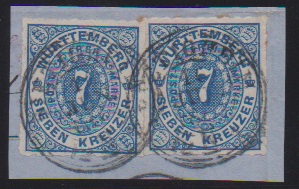 "Bietigheim", K2 auf Prachtbriefstück mit zweimal 7 Kr. blau