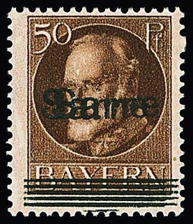 50 Pfg. Bayern-"Sarre" mit doppeltem Aufdruck tadellos ungebraucht, sign. Dub und Attest Haslau (2025). Mi. 450,-