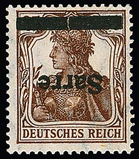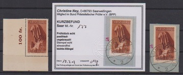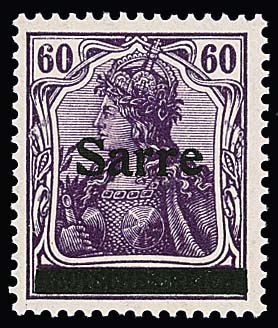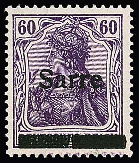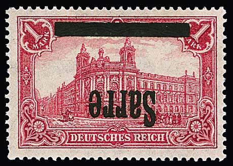 1 Mk. mit kopfstehendem Aufdruck "Sarre" in Type I ungebraucht. Sign. Dub, Böcking und Attest Haslau (2025): "Die Qualität ist einwandfrei". Mi. 900,-
