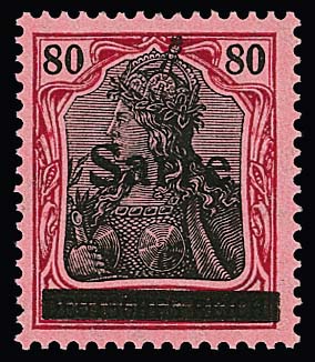 80 Pfg. "Sarre" mit Aufdruckfehler "B" ("geteilter Balken") tadellos postfrisch. Sign. Dub und Attest Haslau (2025). Mi. 1000,-
