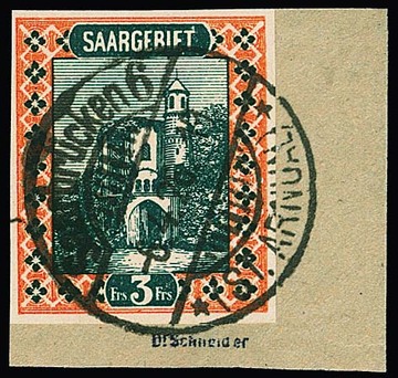 3 Fr., Abart "ungezähnt", auf tadellosem Briefstück, sign. Dr. Schneider und Attest Ney (für zerteilten Viererblock). Mi. 400,-