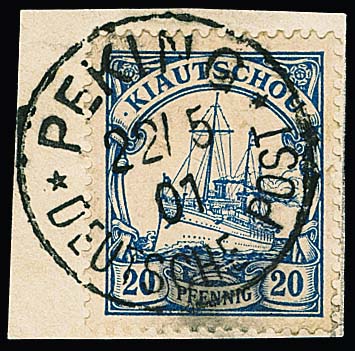 Petschili, 20 Pfg. von Kiautschou auf Briefstück mit K1 von Peking, 22.5.1901, sign. Mansfeld. Mi. 550,-