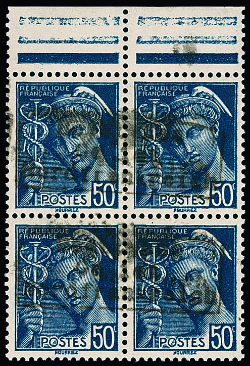 Dünkirchen 50 C. Merkur im postfrischen Oberrand-Viererblock mit Handstempelaufdruck in Type I, Attest Pieles. Mi. 600,- +