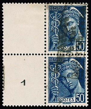 Dünkirchen 50 C. Merkur, senkrechtes Paar (mit Zwischensteg links) mit Handstempelaufdruck in Type I, die obere Marke ungebraucht, untere und Steg postfrisch. Sign. Fischer und Attest Pieles. Mi. ca. 250,-