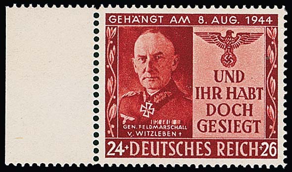 Britische Propaganda-Fälschungen für Deutschland, 24 + 26 Pfg. v. Witzleben als postfrisches Randstück, Mi. 800,-