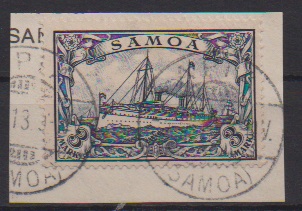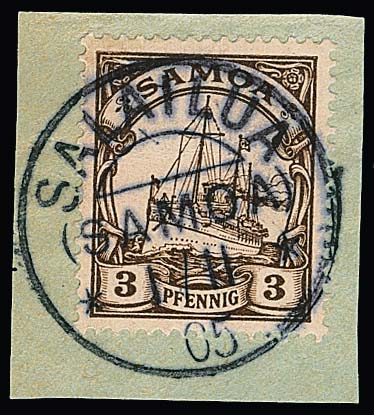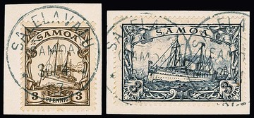 Zwei Briefstücke mit seltenem Stempel "Salelavalu": 3 Pfg. sowie gute 3 Mk. (alleine Mi. 170,-)