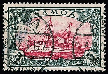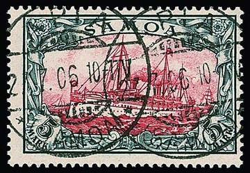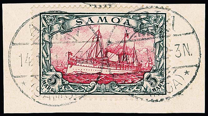 5 Mk. Kaiseryacht tadellos gestempelt "Apia", Attest Jäschke-L. Mi. 600,-