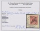 5 Pfg. a. 10 Pfg., steiler Aufdruck, Überdruck in Type 3c (kommt im Halbbogen nur einmal vor!) tadellos gestempelt, Attest Jäschke-L. Mi. 500,- +