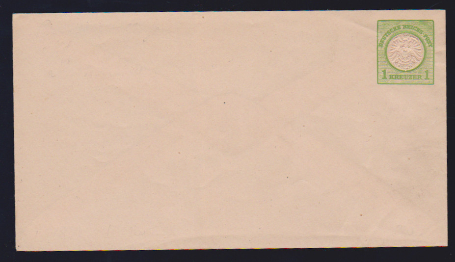 Privat-Ganzsache 1 Kr. grün auf sämisch, Format 149:82mm, ungebraucht