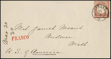 2 1/2 Gr. rotbraun, Kabinettstück mit Sachsen-K2 "Tharant" auf Überseecouvert in die USA, sign. Hennies
