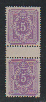 5 Pfg., senkrechtes postfrisches Zwischenstegpaar, untere Marke Plattenfehler III, sign. Zenker (Mi. alleine 120,-)