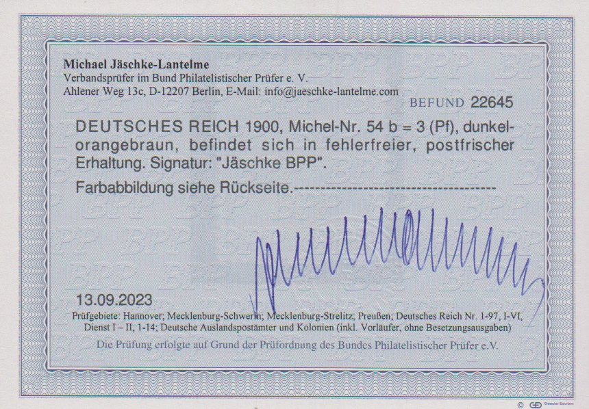 3 Pfg. dunkelorangebraun postfrisch, sign. Jäschke und Fotoexp. Jäschke-L. Mi. 440,-
