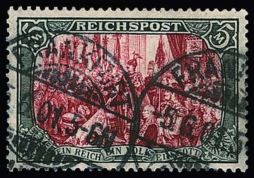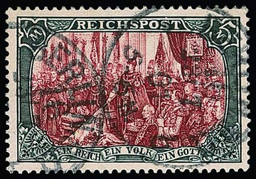 5 Mk. Reichspost in Type II tadellos gestempelt, sign. Jäschke. Mi. 500,-