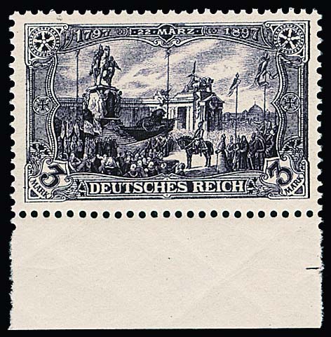 3 Mk. schwarzviolett, 25:16 Zahnlöcher, postfrisches Unterrandstück, Fotoexp. Jäschke-L. Mi. 360,- +