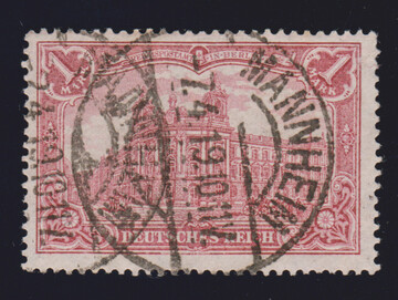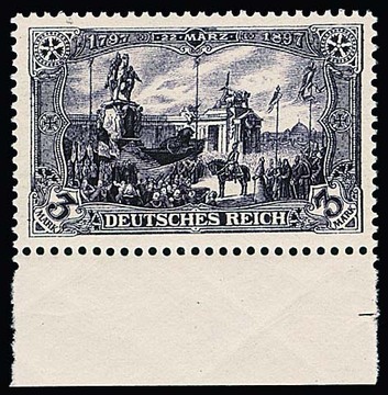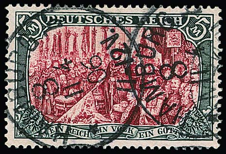 5 Mk., 26:16 Zahnlöcher, gute Farbe, tadellos und klar gestempelt "Hamburg", sign. Jäschke-L. Mi. 450,-