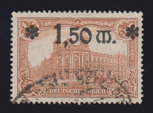 1,50 a. 1 Mk. mit Aufdruckabart "1 des Aufdrucks mit breitem Kopf" mit BP-Stempel, sign. Infla. Mi. 380,-