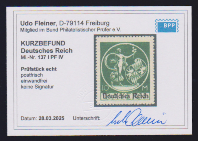 10 Mk. Bayern-Abschied in guter Type II postfrisch, sign. Infla. Mi. 600,-