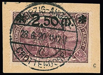 2,50 M. a. 2 Mk. braunlila bzw. rosalila je tadellos gest., sign. Infla, Oechsner. Mi. 500,-