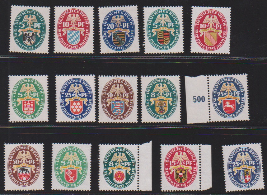 Nothilfe Wappen 1925 bis 1929 kpl. postfrisch (Nr. 375-77, 398-401, 425-29, 430-34), Mi. 780,-