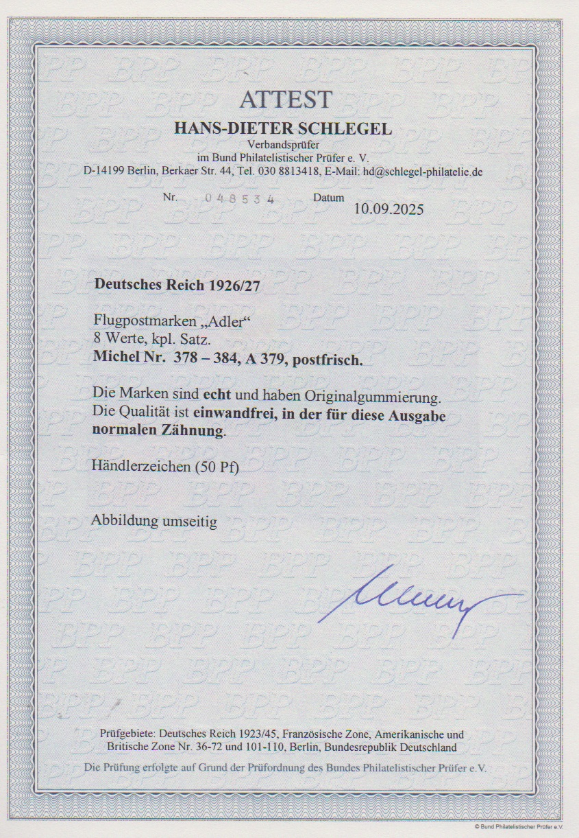 Flugpost postfrisch, Attest D. Schlegel. Mi. 1300,-