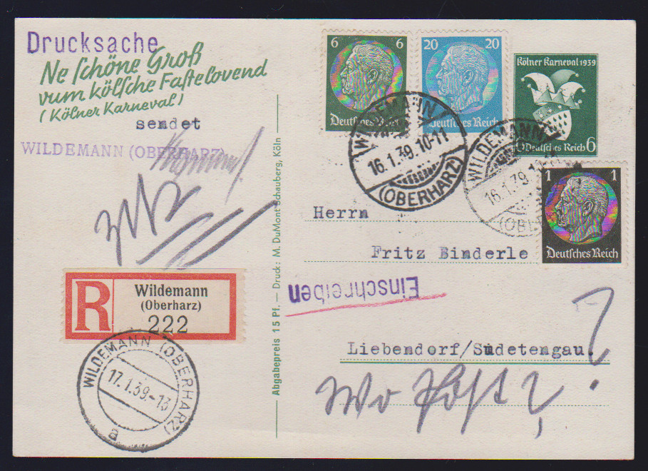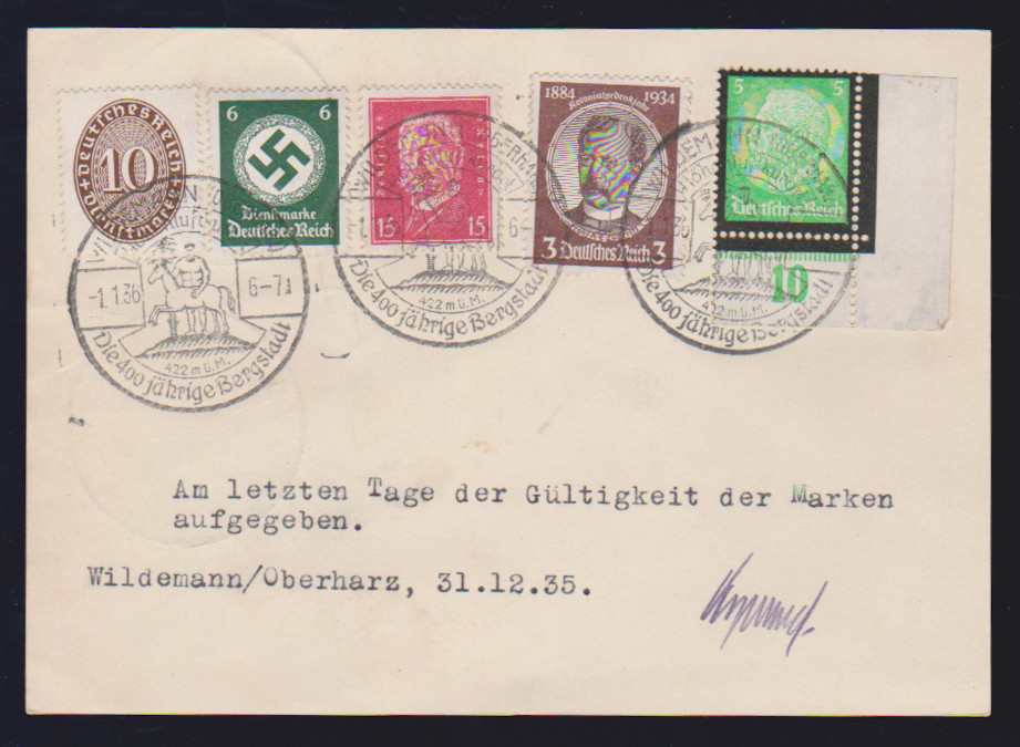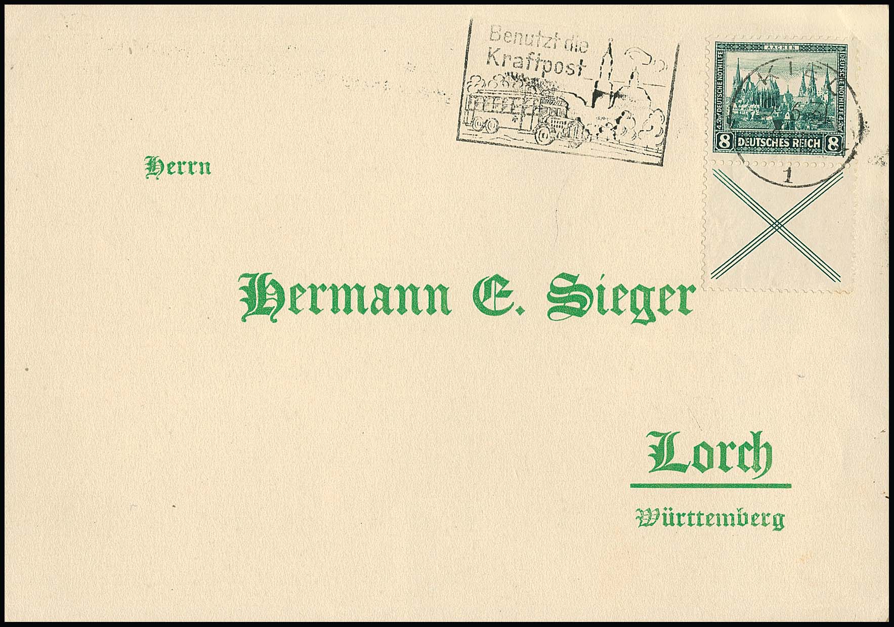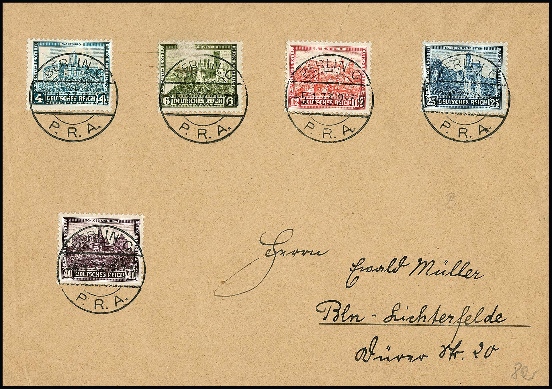 Nothilfe auf Couvert mit idealen Luxus-Versandstellenstempeln, billige 6 Pfg. geschürft